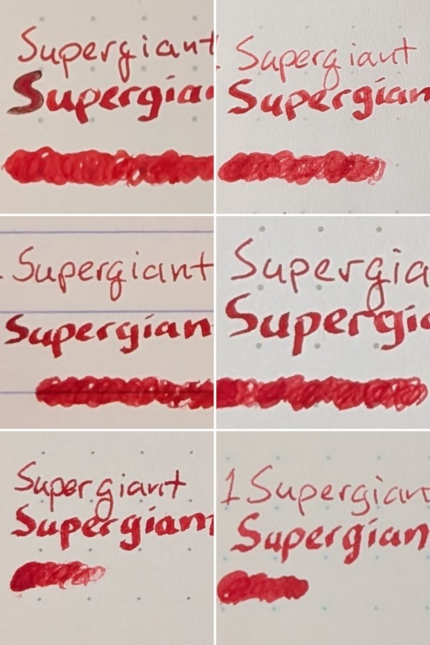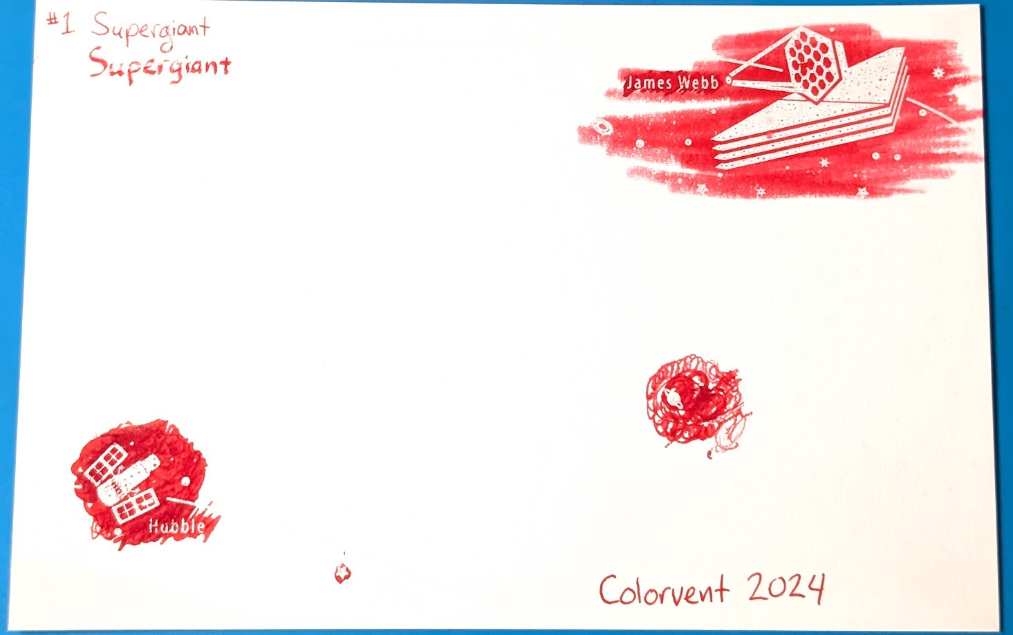 Colorverse Colorvent 2024 Day 1 is "Supergiant", a very bright red with a tad of orange. Also maybe a hint of sheen? Pretty nice overall. I like bold reds like this. Might be close to Diamine Wild Strawberry but not a dupe.