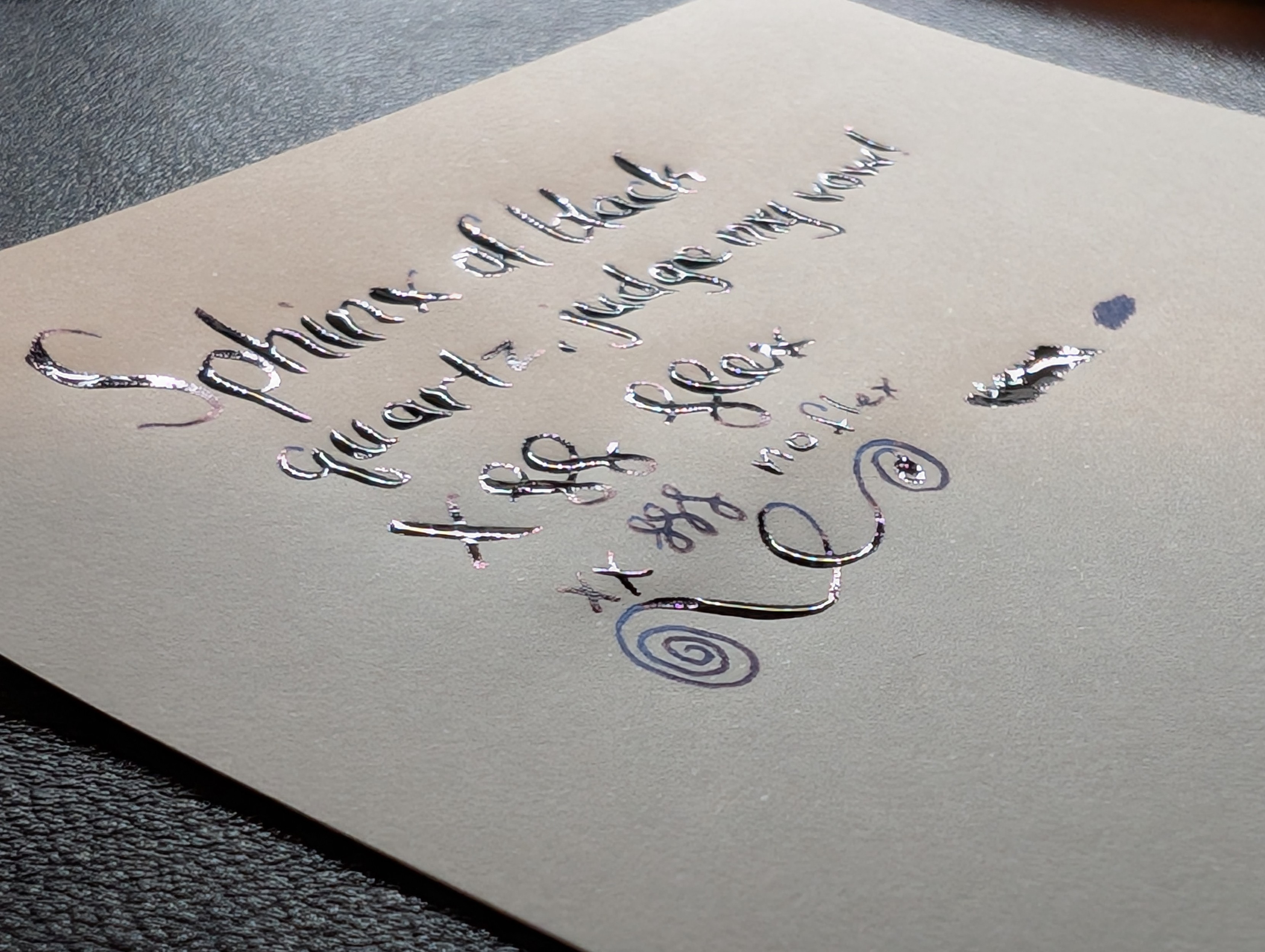 It went down extraordinarily heavy when flexing on Midori MD paper (see the first image for how much it puddled), but when it did that, the sheen took over a bit too much after it dried so it was counter-productive. This one glows much better when writing thinner, either without flex or especially when reversed. So this may be going in an EF pen for me once I run this out.