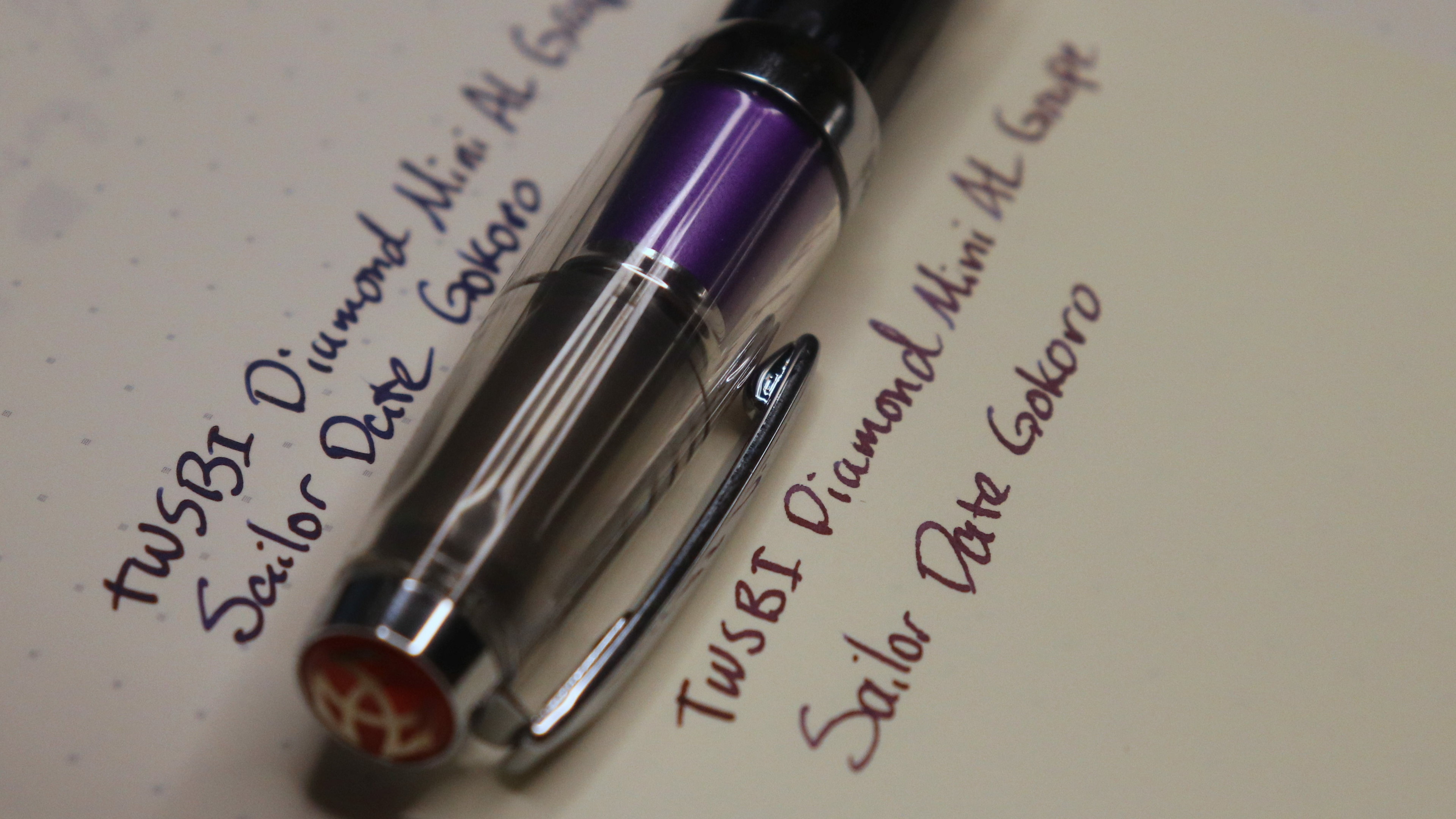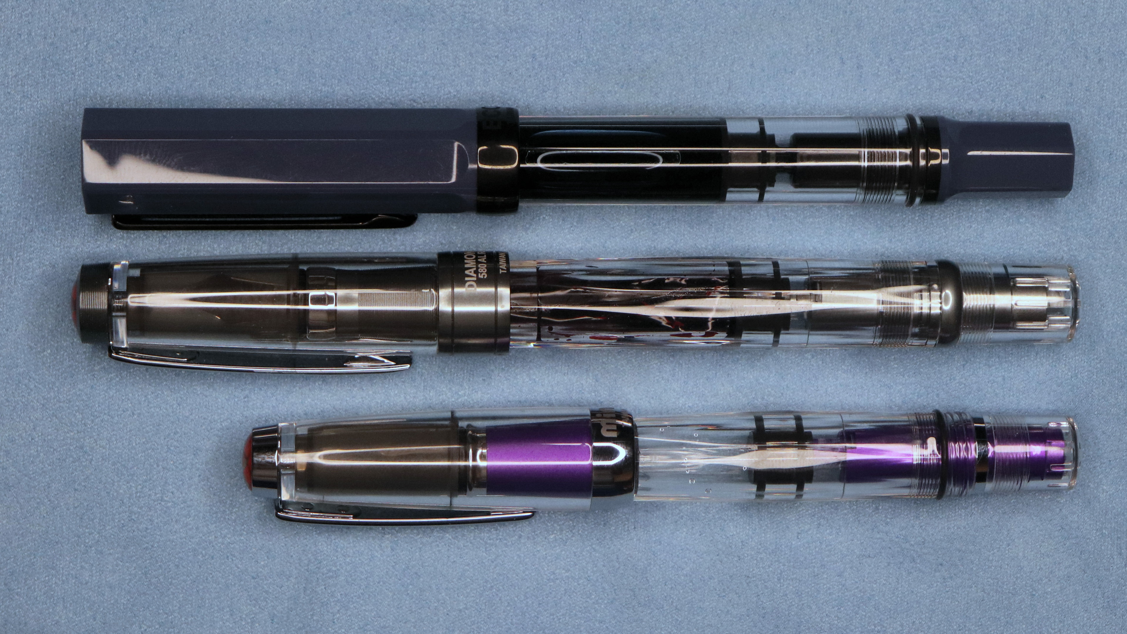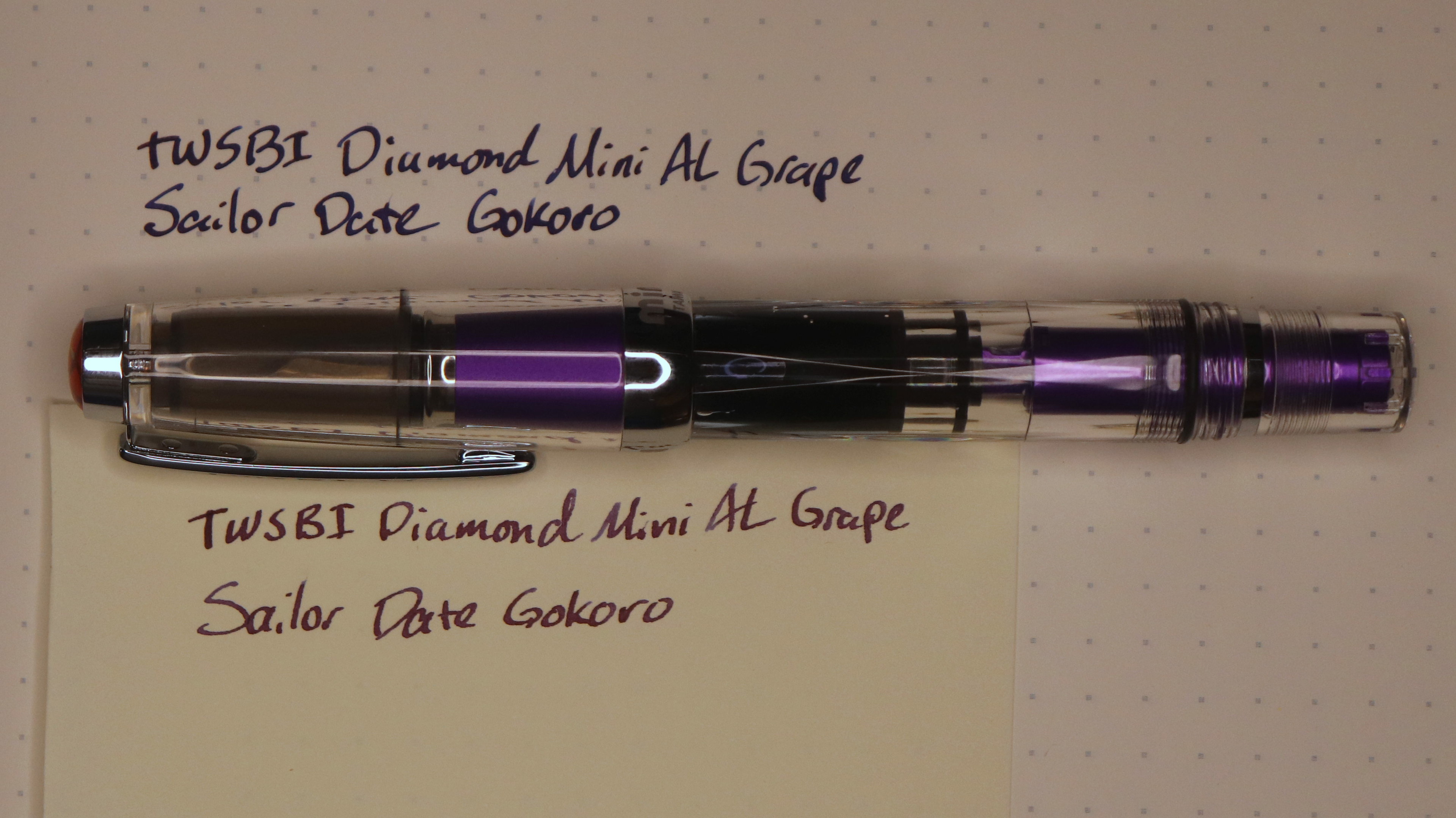 TWSBI hasn't sold a red or purple Diamond 580 ALR pen in years, but they have this "Grape" Diamond Mini AL. I hesitated due to its size, but it's nice. I prefer the 580, but I can write well even w/o posting this one. The cap threads on the back and makes it even more comfortable.