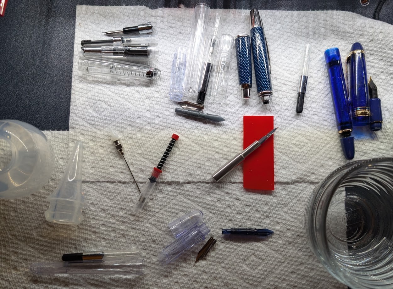 Aftermath of just the first of many rounds of pen cleanings I have ahead of me.