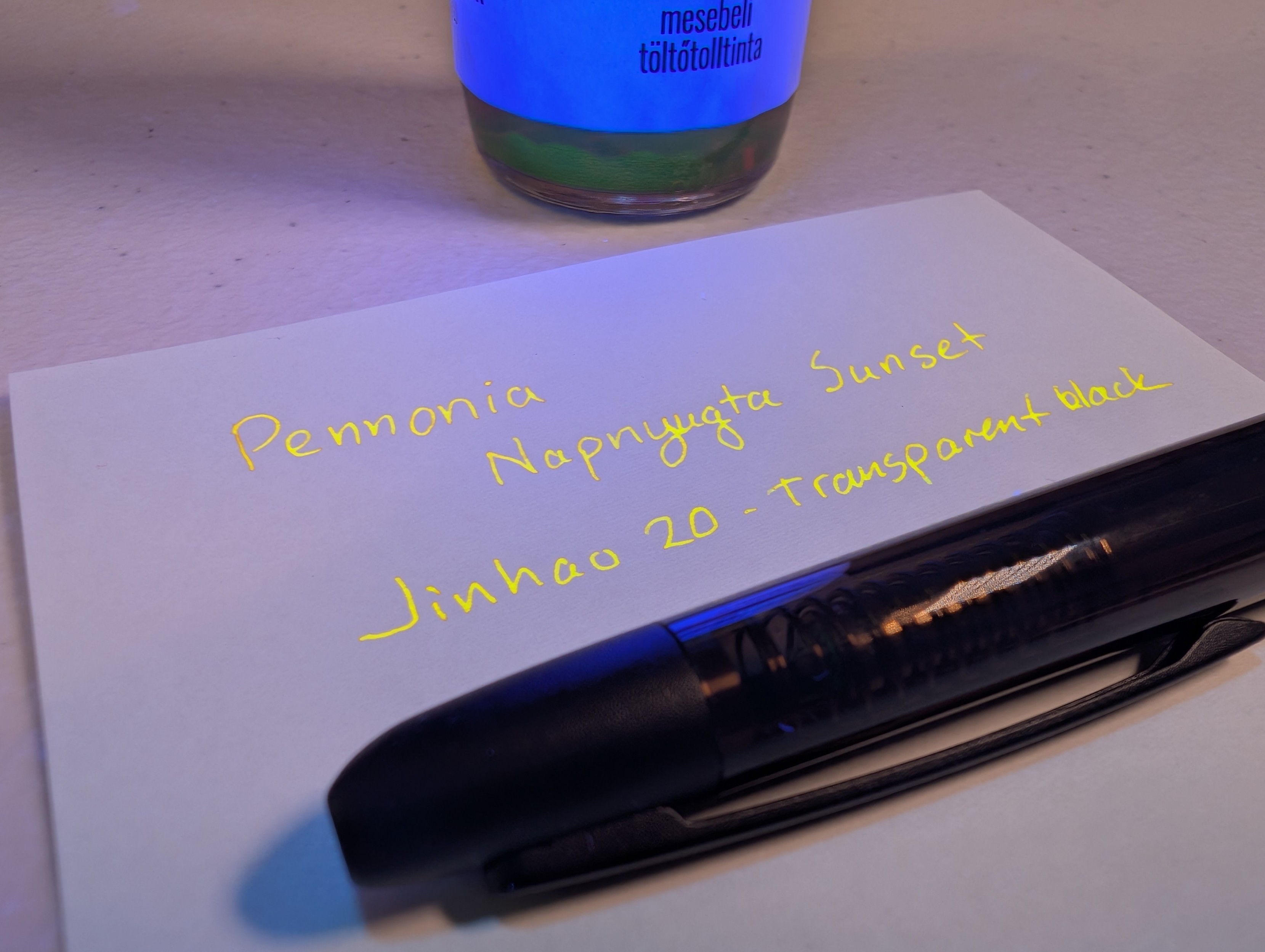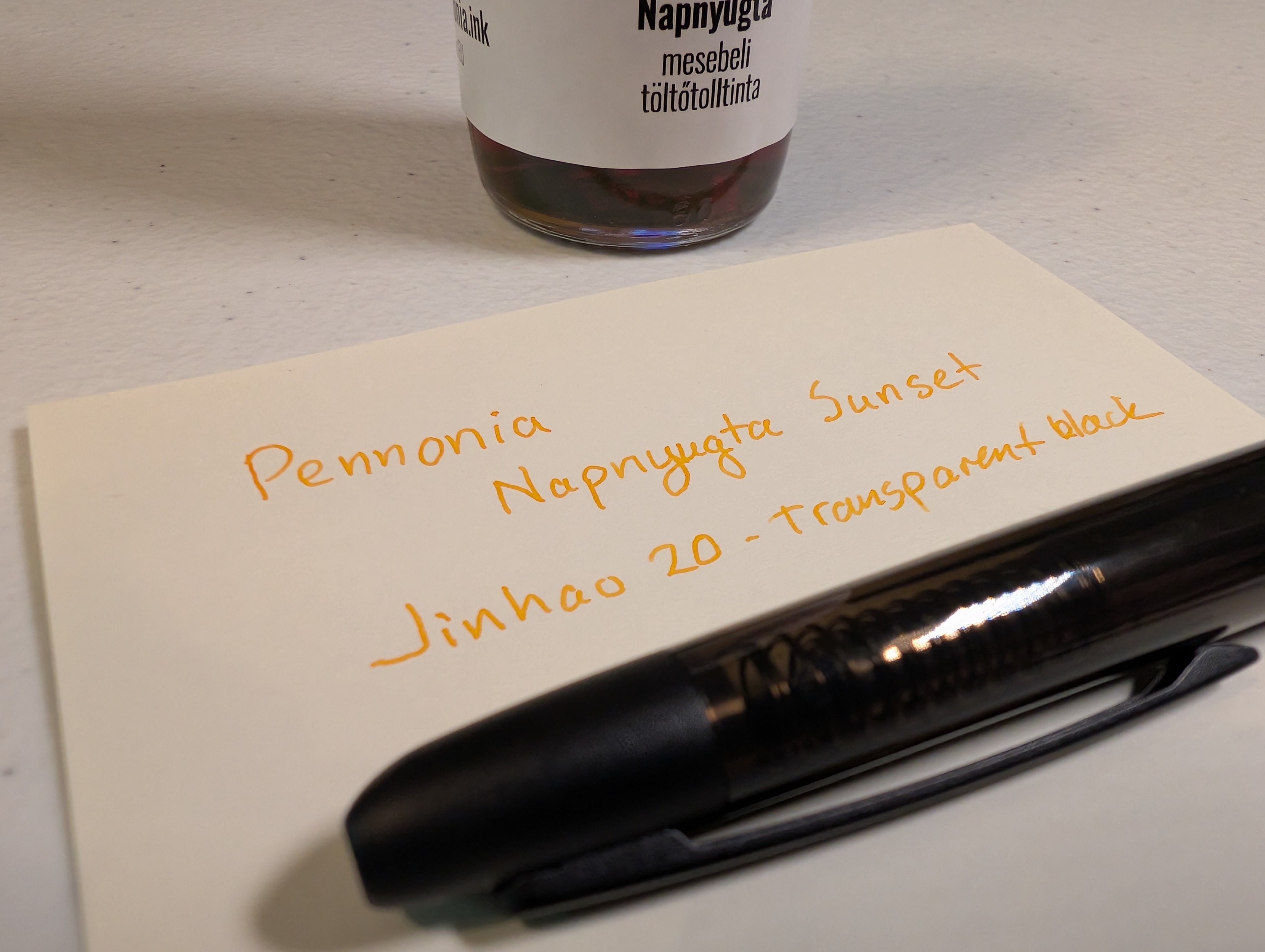 I also bought a full bottle of Pennonia Napnyugta Sunset since I liked the sample. Seems to work well in the Jinhao 20 but probably would be even better in a wider nib.