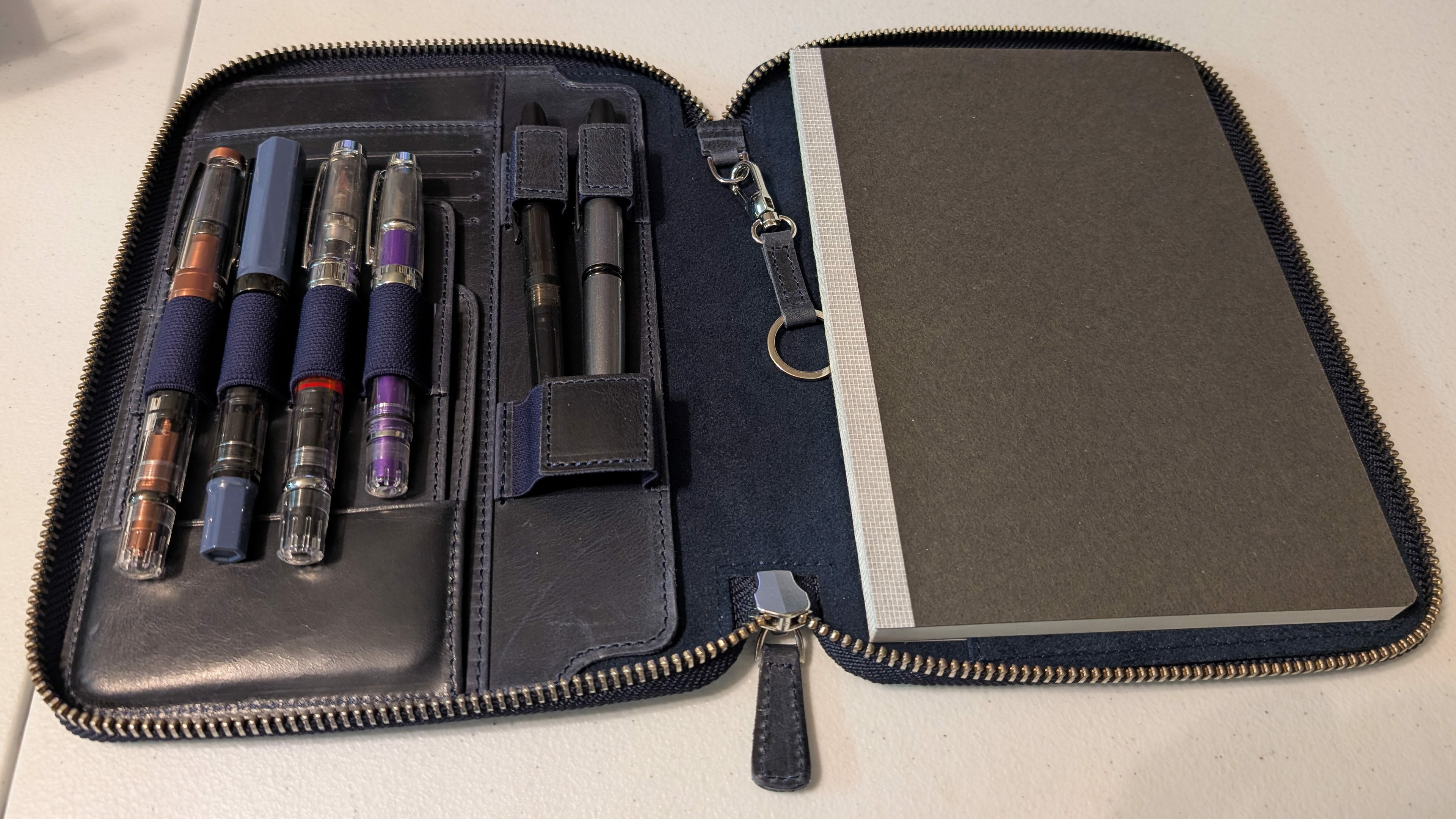 Also with this set of pens, it was kind of lumpy(?) when closed, like it was stressing to fit them. If I used less bulky pens in the four slots on the left it was fine. May need worked/broken in a bit.