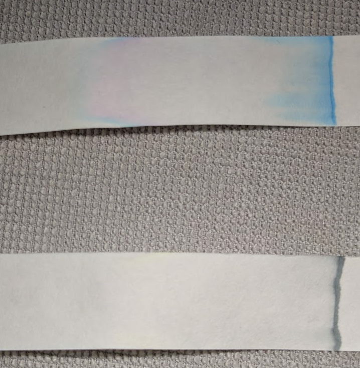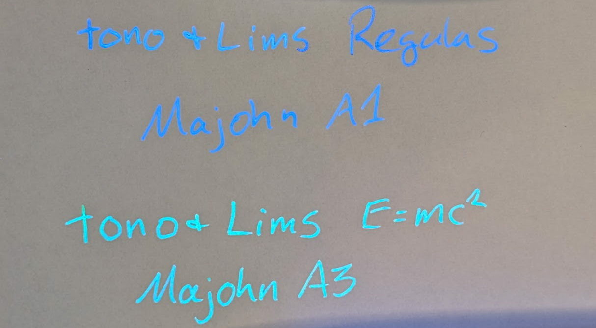 Chromatography for both, Regulus is on top, E=mc² on the bottom. Natural light doesn't show much, it's very faint in both cases.