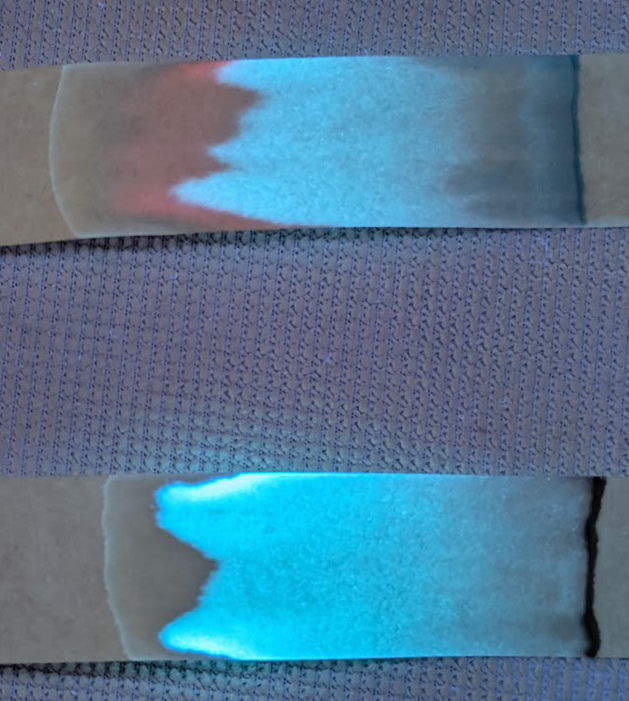 Second two images are just the Midori sheet, first in natural then UV light.