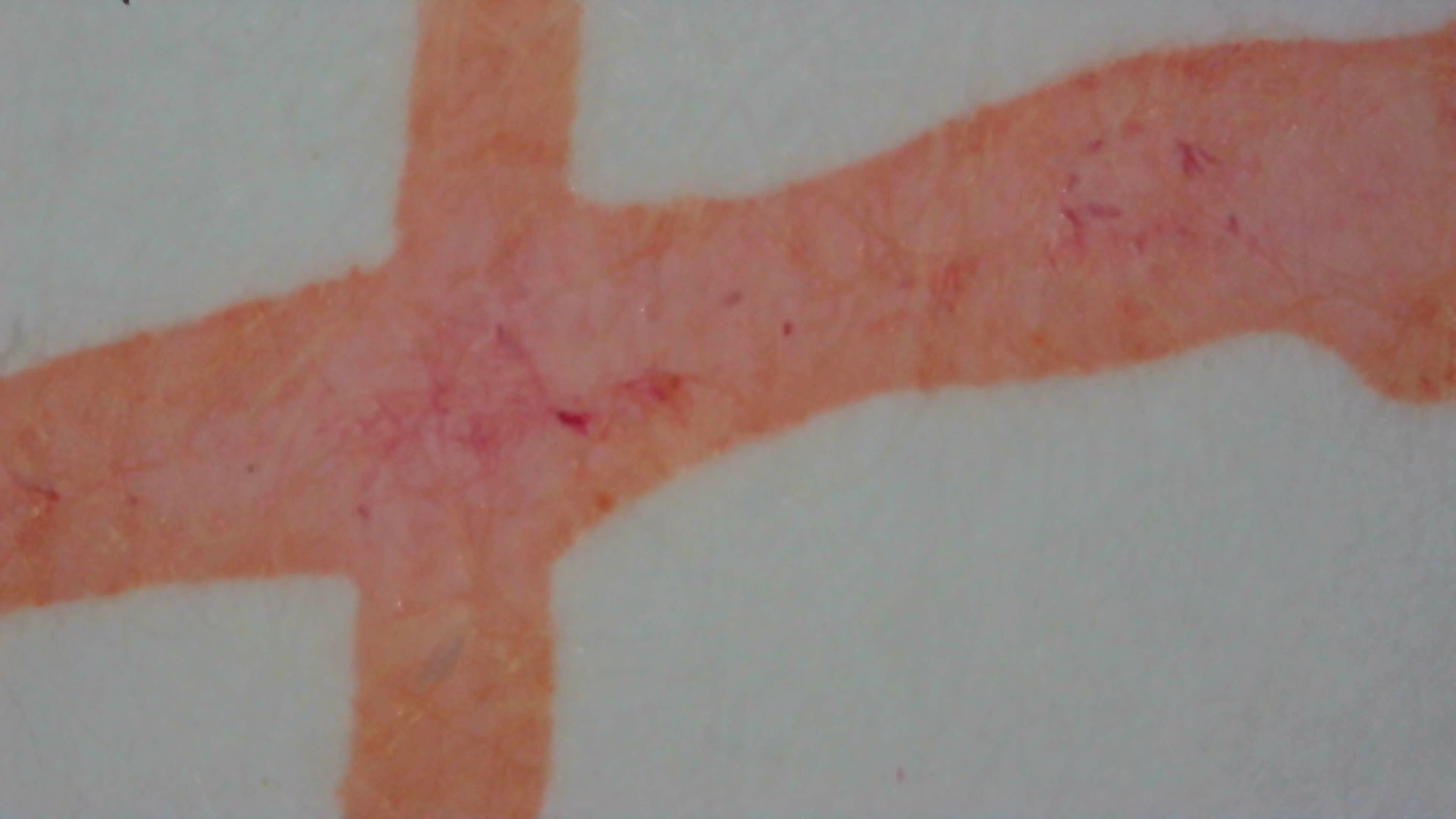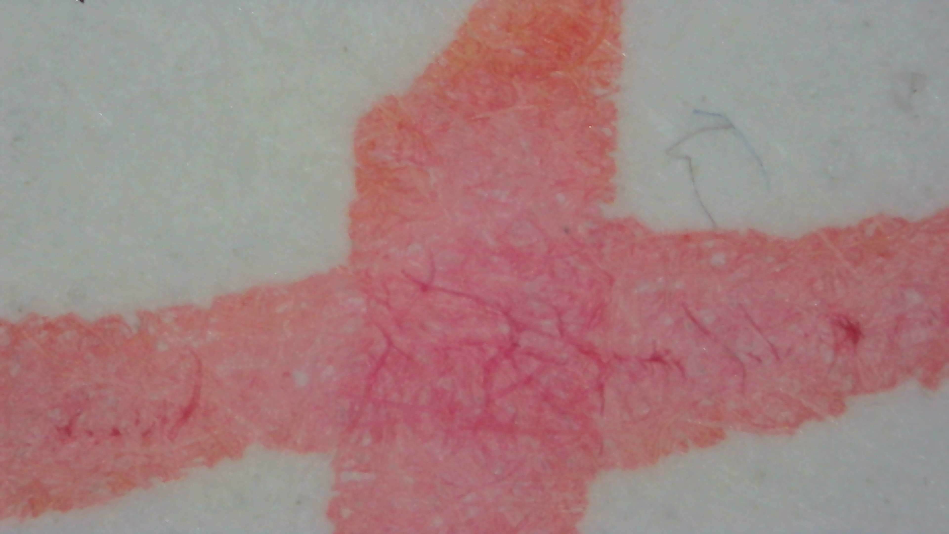 Under magnification on col-o-ring it still looks like a pinkish tone, with some areas much darker red.