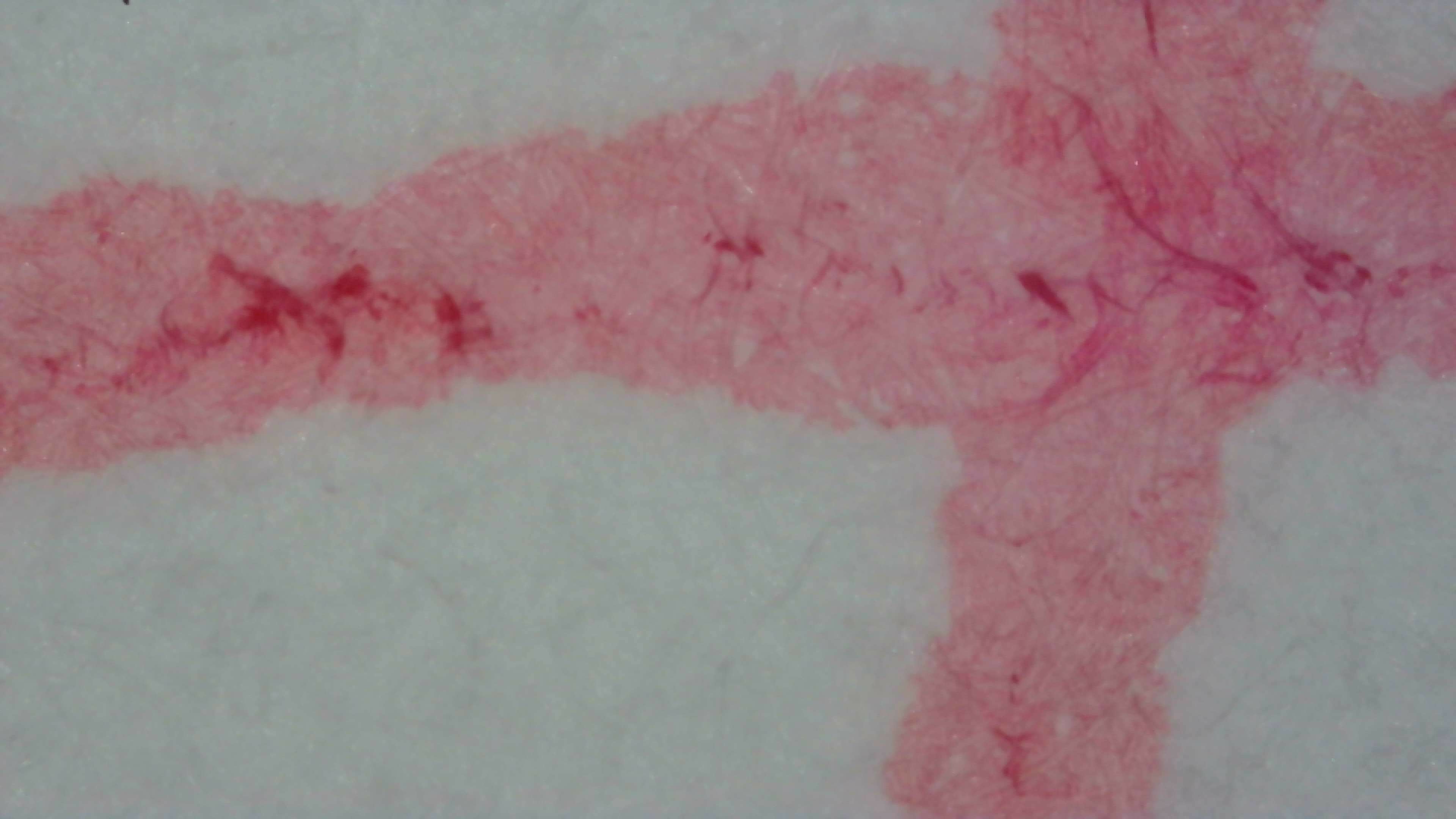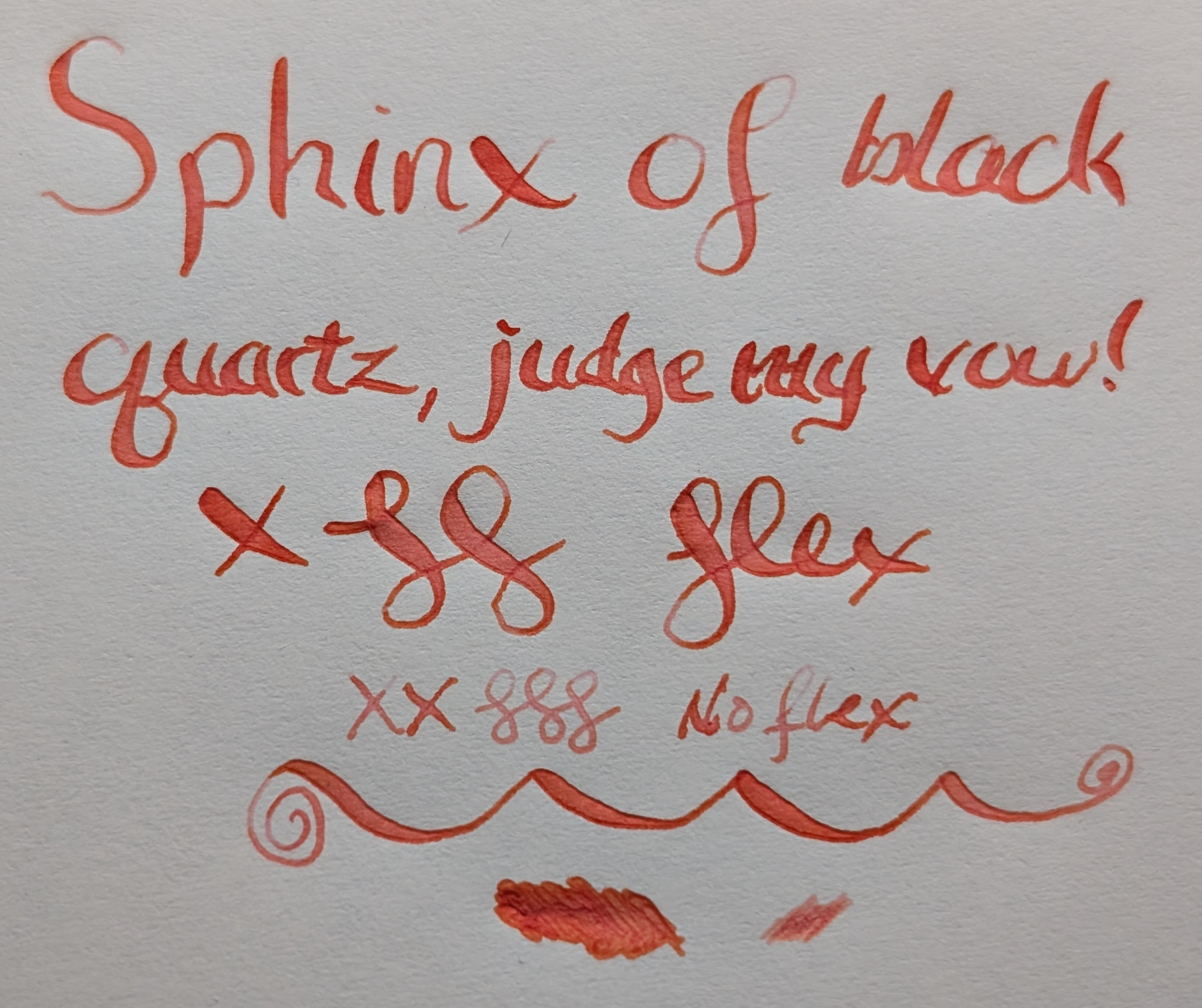 Because of the way it was behaving I thought I'd try a flex pen. It looks a lot more red-orange this way, but a darker shade of the same overall hue. Some of the larger parts of letters have some pink.