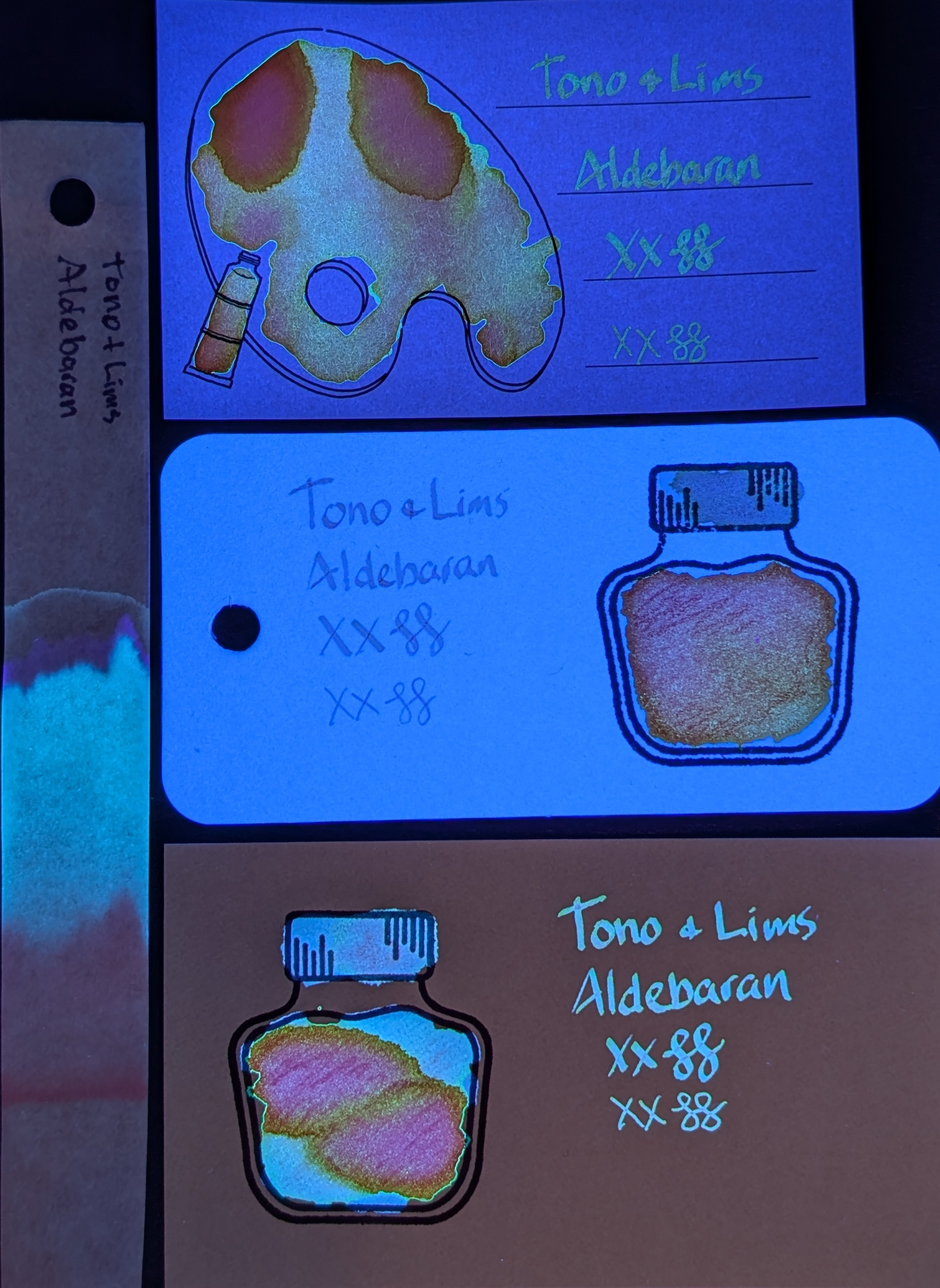 UV is even wilder. It glows differently on each paper depending on coverage, blue/orange/purple/green. It's so weird, I love it!